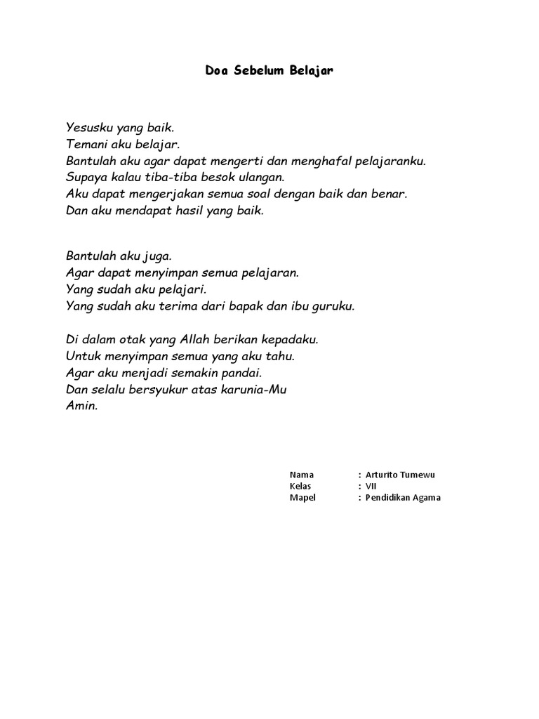 Kumpulan doa kristen doa sebelum dan sesudah belajar dalam agama kristen sudah selayaknya kita panjatkan setiap hari sebagai ucapan syukur kita atas segala rahmat dan kemudahan yang sudah tuhan yesus berikan untuk kita semua tanpa terkecuali. Oh sanghyang widhi wasa tuntunlah kami dari jalan sesat ke jalan yang benar dari jalan gelap ke jalan yang terang hindarkan. Doa sebelum belajar 1.