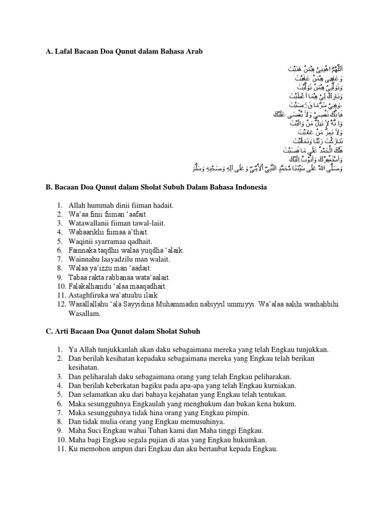 Doa Qunut Latin Bahasa Indonesia Blog Pendidikan