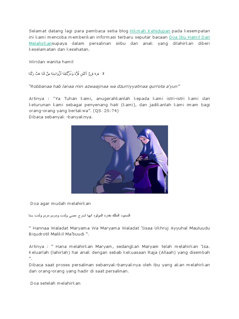 Hana melahirkan maryam sedangkan maryam telah melahirkan isa. Doa mandi setelah melahirkan. Doa ini baik dibaca ketika menjelang persalinan tidak saja anda akan tetapi orang yang ikut hadir dapat membantu.