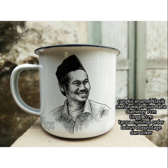 Cangkir Enamel Klasik Sketsa Wajah Gus Baha Jadul Vintage 7cm Shopee Indonesia