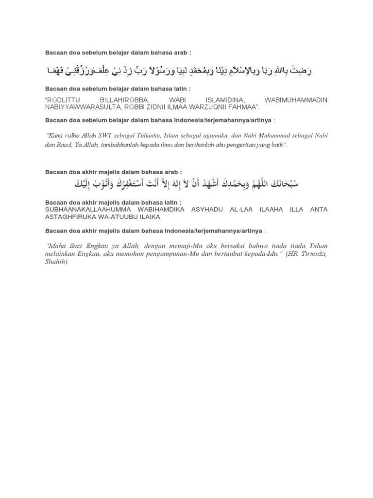 Bacaan Doa Sebelum Dan Setelah Belajar Latin Dan Artinya