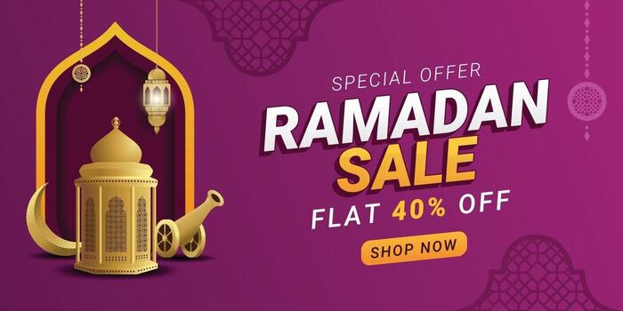 Premium Vector Ramadan Sale Banner Design With Golden Shiny Frame Arabic Lanterns And Islamic Ornament On Purple