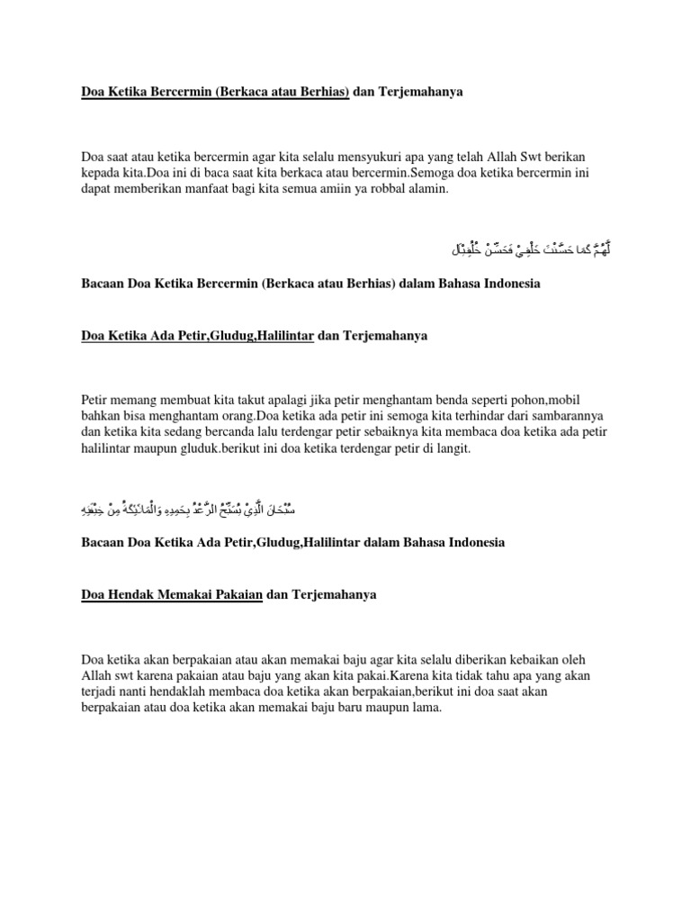 Membaca doa bercermin ketika berhias atau bercermin selalu mengingat allah subhanallahu wa taala ketika bercermin atas segala apa yang telah di ciptakannya dalam diri kita semua atas nikmat fisik kecantikan keindahan kesehatan dan kelengkapan anggota tubuh anda. Kumpulan doa sehari haridoa bangun tidurdoa bangun tidur diamalkan ketika pagi hari sewaktu bangun tidur. Makna cara arab indonesia dan penjelasannya pada kesempata ini fiqihcoid akan menuliskan mengenai doa ketika becermin.