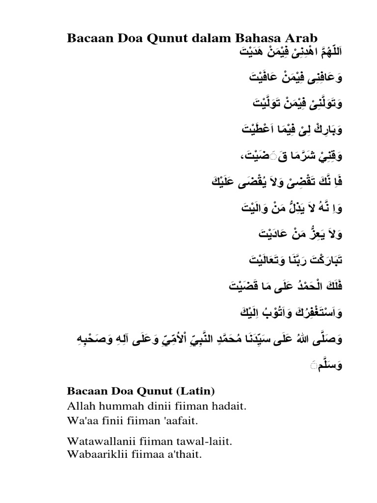 Islam Itu Suci Bacaan Doa Qunut Solat Subuh Rumi Sembahyang Bahasa Arab Kutipan Rohani