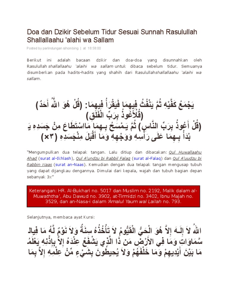 Bacaan Doa Sebelum Tidur Bahasa Arab Indonesia Arti Amalan Sunnah Hijaiyyah Com