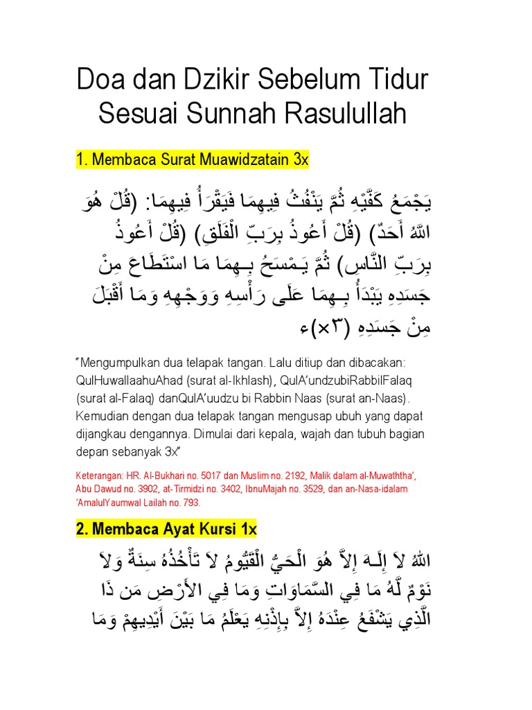 Doa Sebelum Tidur Dalil Bacaan Arab Latin