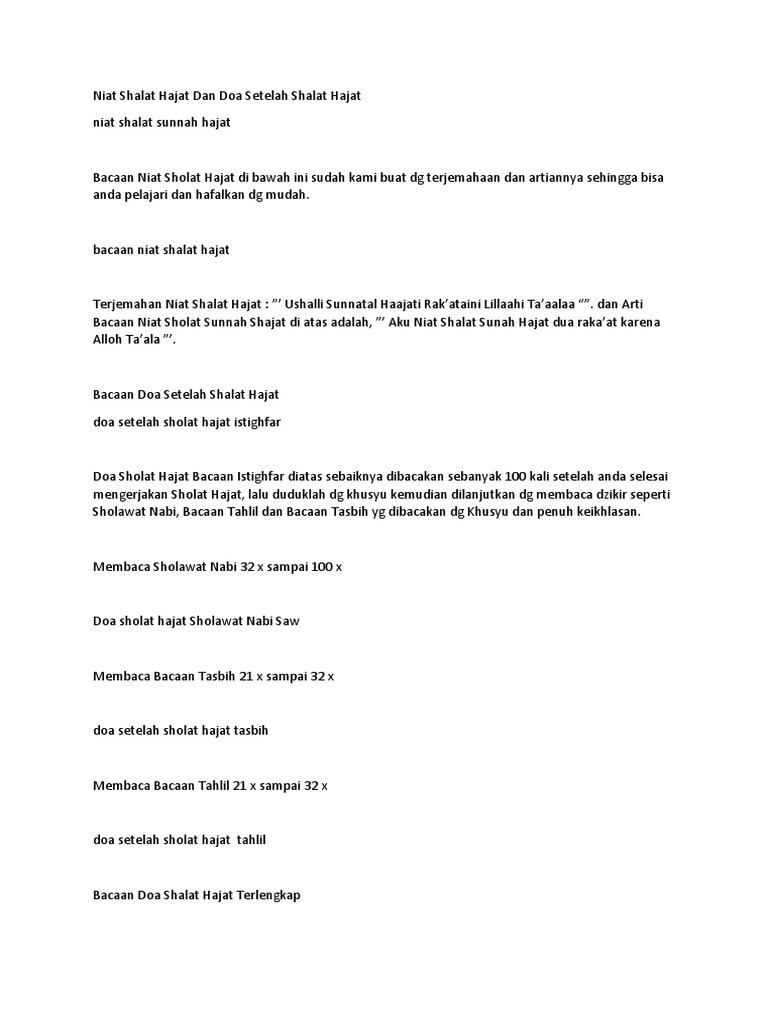 Niat Shalat Hajat Dan Doa Setelah Shalat Hajat
