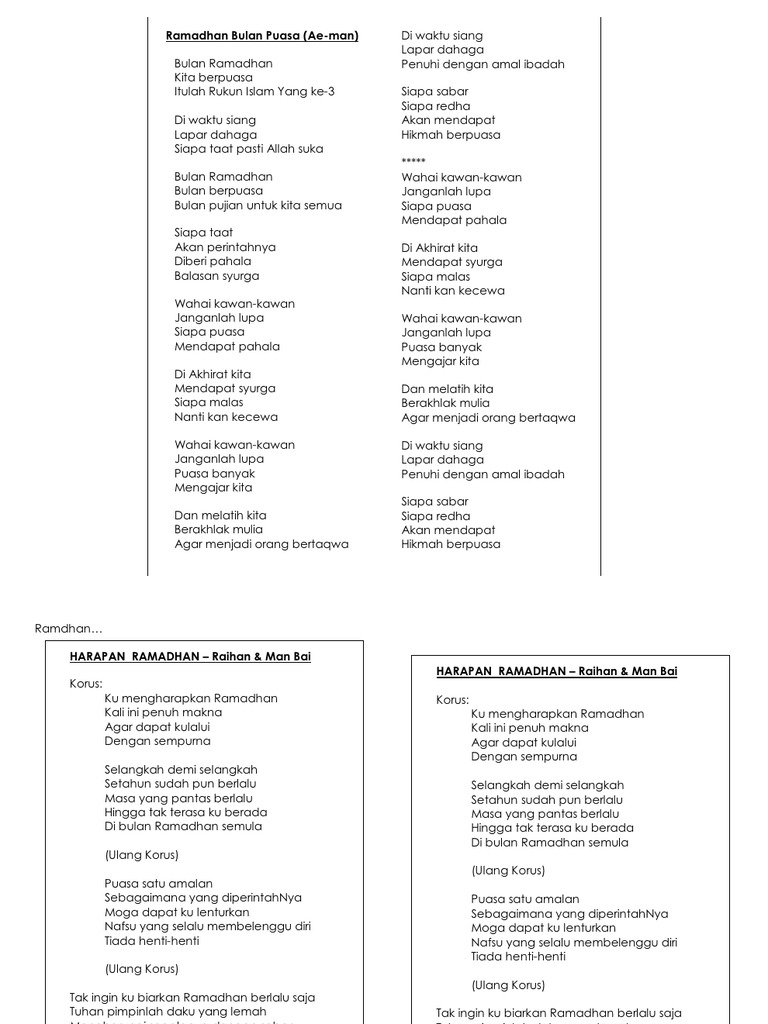 Ramadhan Bulan Puasa Lirik Lagu