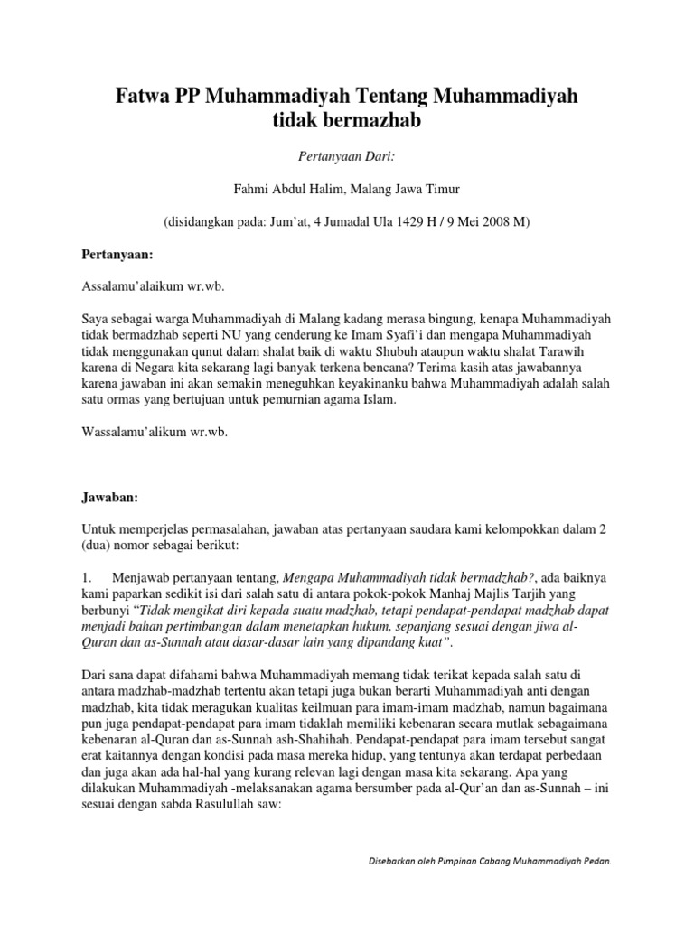 Https Fatwatarjih Or Id Wp Content Uploads 2020 02 Fatwa 2008 Mengapa Muhammadiyah Tidak Mengamalkan Qunut Pdf