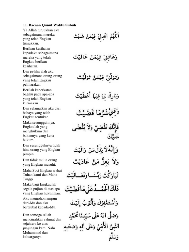 Berikut bacaan doa qunut yang dapat di. Pada rakaat kedua solat fardu subuh sebelum sujud kekal berdiri lurus dengan mengangkat kedua dua tangan dan berdoa membaca doa qunut.