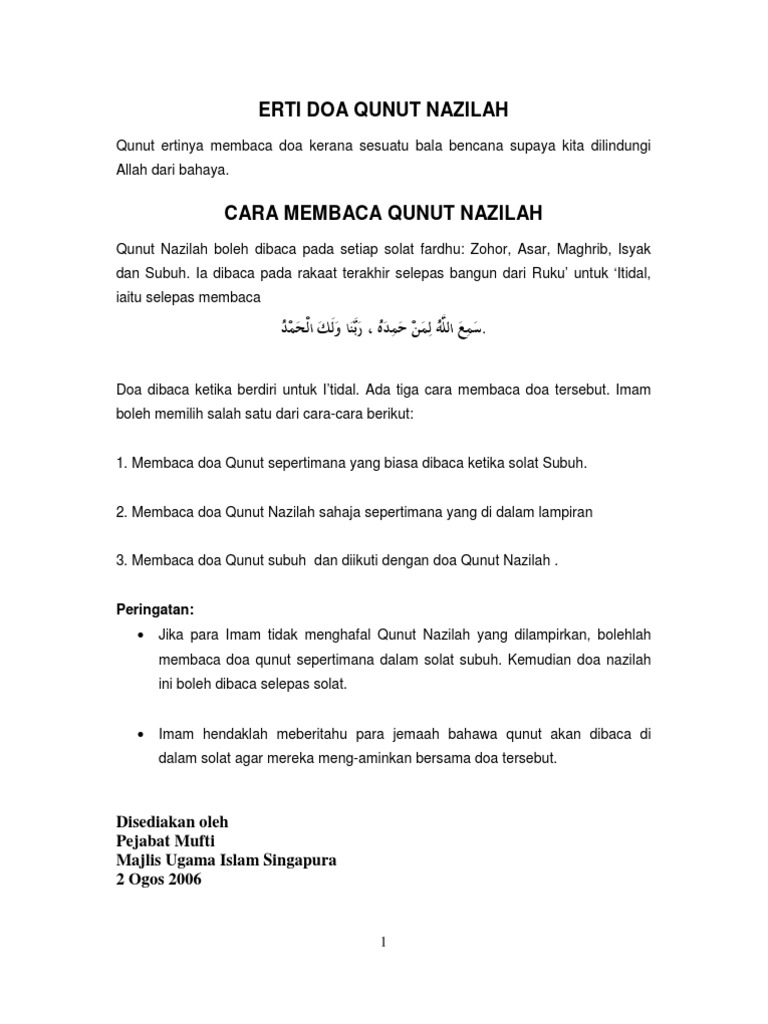 Doa Qunut Nazilah Dan Erti Bahasa Melayu Mamanadia Com