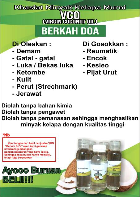 Vco Berkah Doa Minyak Obat Minyak Kecantikan 100ml Shopee Indonesia