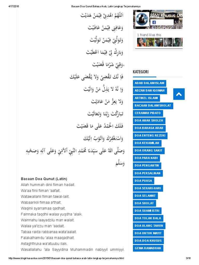 Rangkumanmakalah Com Bacaan Doa Qunut Nazila Bahasa Arab Latin Dan Te