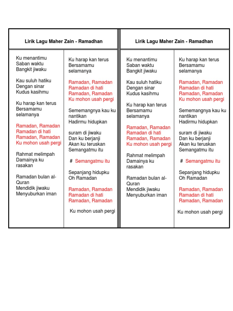Lirik Lagu Ramadan Maher Zain Semua Versi Lirik Lagu Dunia