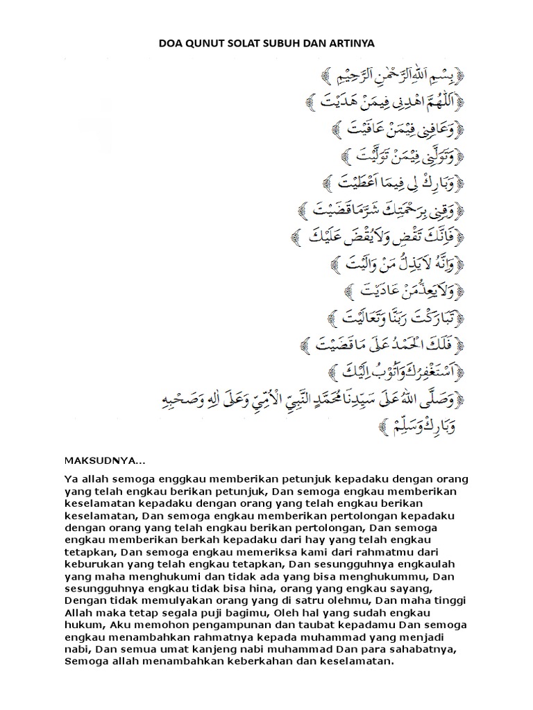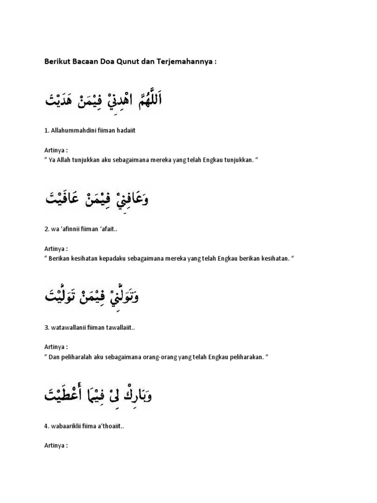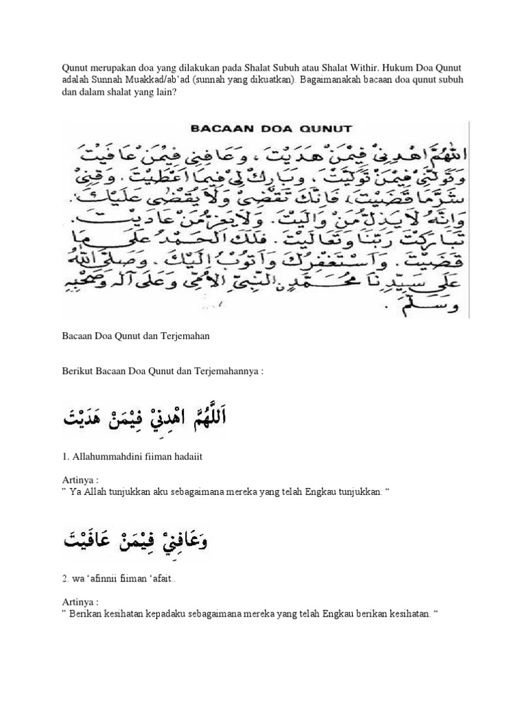 Bacaan Doa Qunut Dan Terjemahan Docx Document