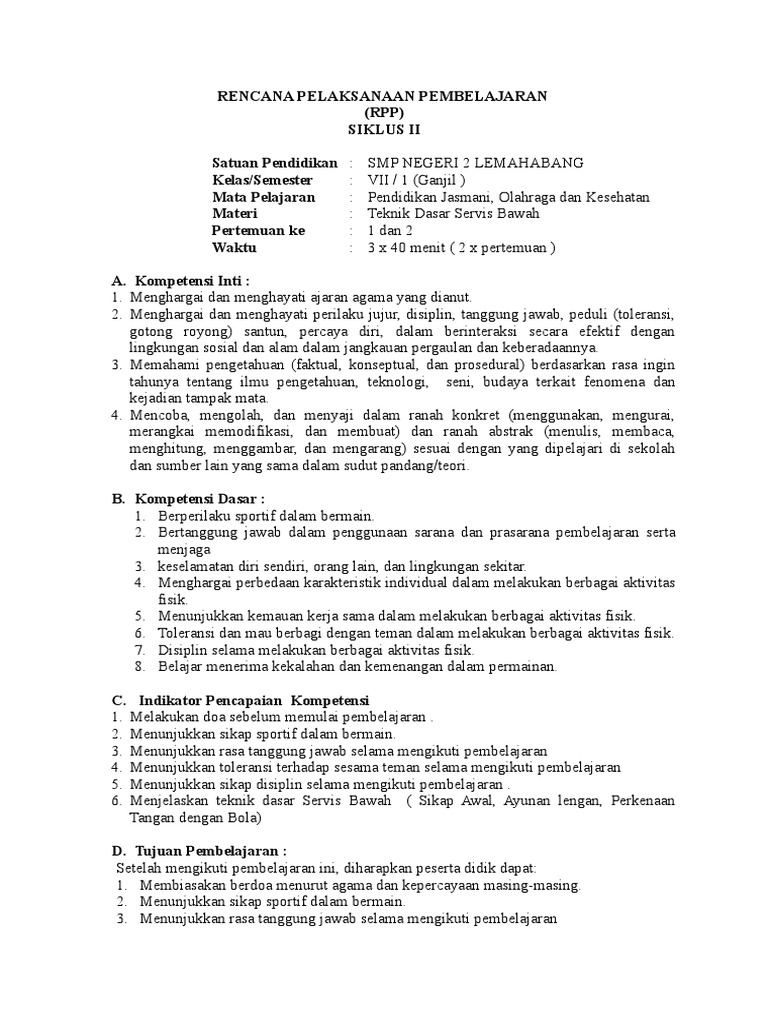 3 Rpp Bola Voli Servis Bawah Bery Smp Negeri 2 Gresik Doc