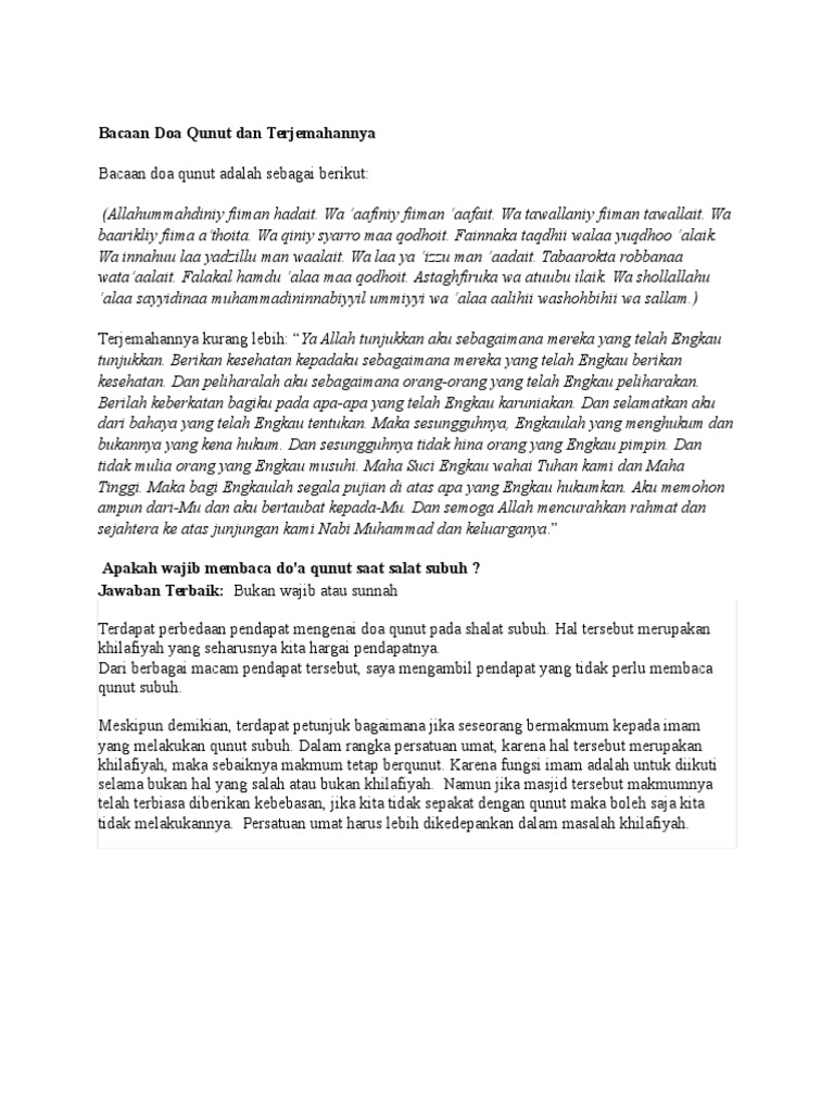 Bacaan Doa Qunut Dan Terjemahnya Docx