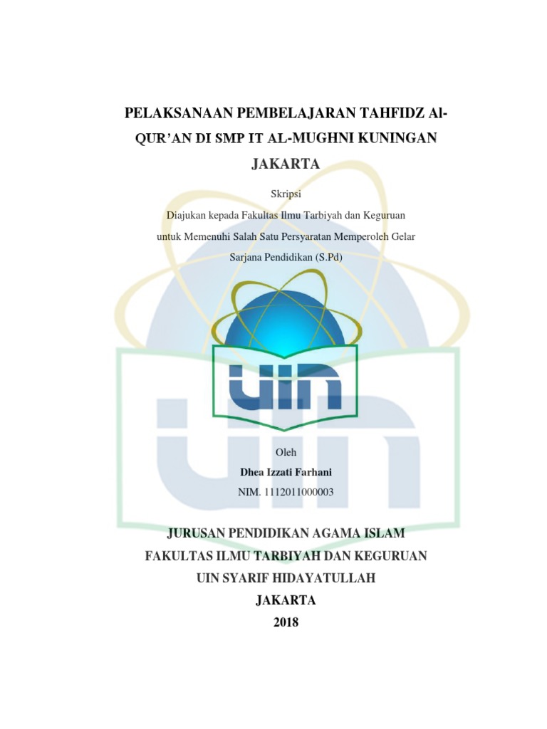 Pelaksanaan Pembelajaran Tahfidz Al Qur An Di Smp It Al Mughni Kuningan Jakarta