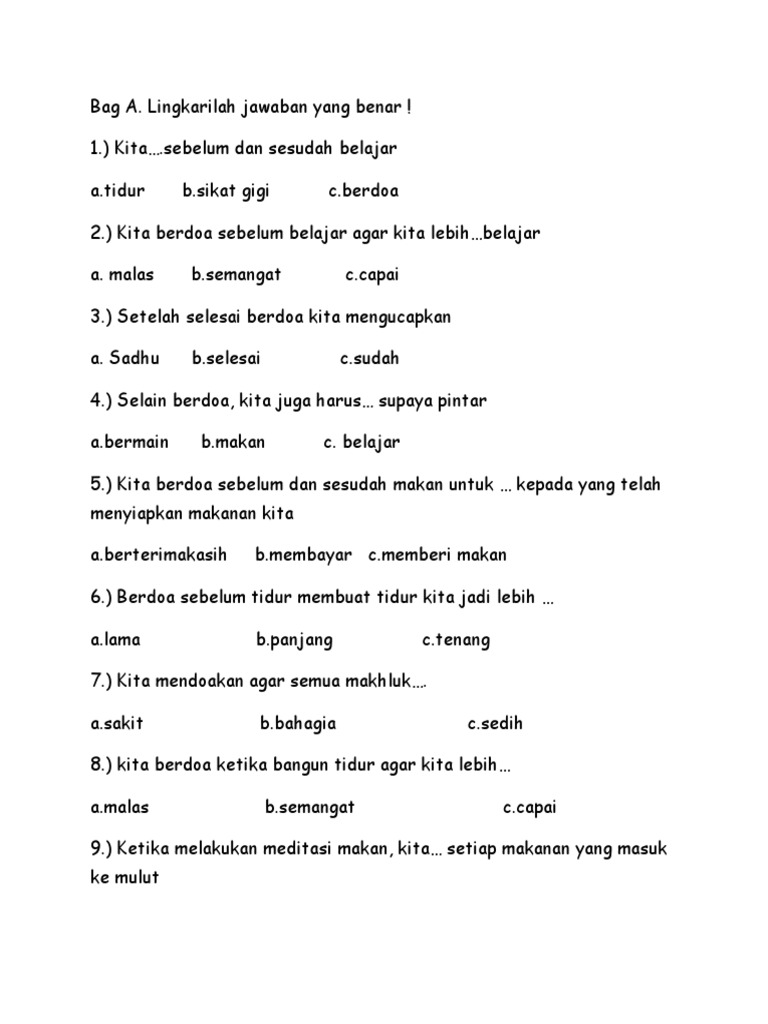 Tetapi lebih kepada perkembangan spiritual anda sendiri. Dalam pergaulan sehari hari kita sering melihat teman teman umat beragama lain yang berdoa sebelum makan dan kita sering hanya bersikap anjali saja untuk menunjukkan bahwa umat buddhis juga melakukan doa sebelum makan. Mengenal doa doa pendek sesuai buddha dharma kompetensi dasar.
