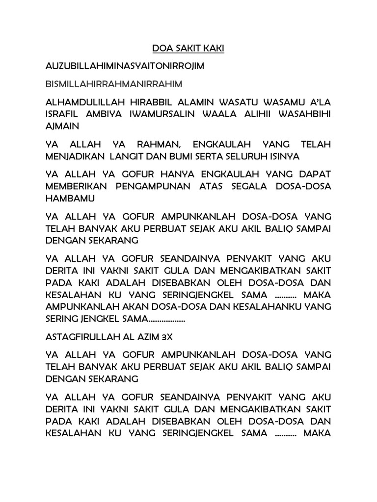Doa Sakit Kaki Di 2020 Kekuatan Doa Doa Membaca