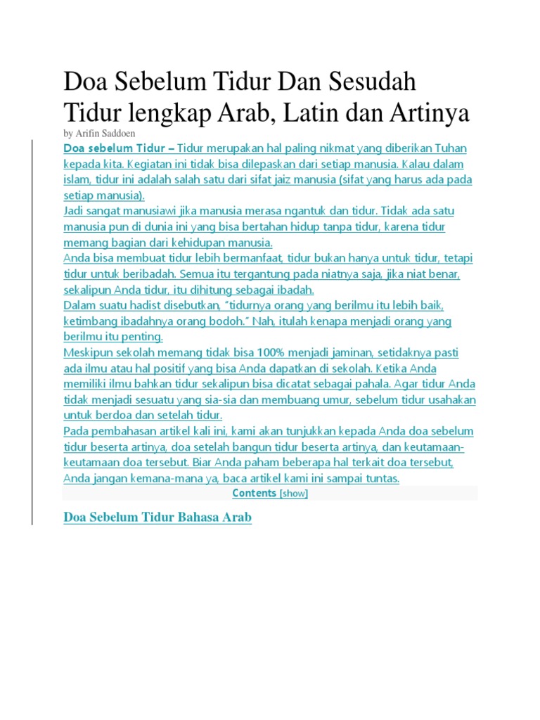 Doa Sebelum Sesudah Tidur Arab Latin Portal Ilmu Com